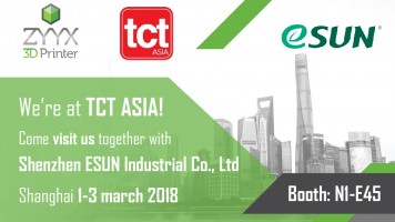 We’re attending TCT Asia 2018 together with Shenzhen Esun Industrial Co, in their booth. At the booth we’re showing professional 3D printing materials for the the ZYYX3D Printer lineup and advanced 3D printing filaments for the ZYYX pro.   Although what’s stealing the show is our teasing of our newest developments;